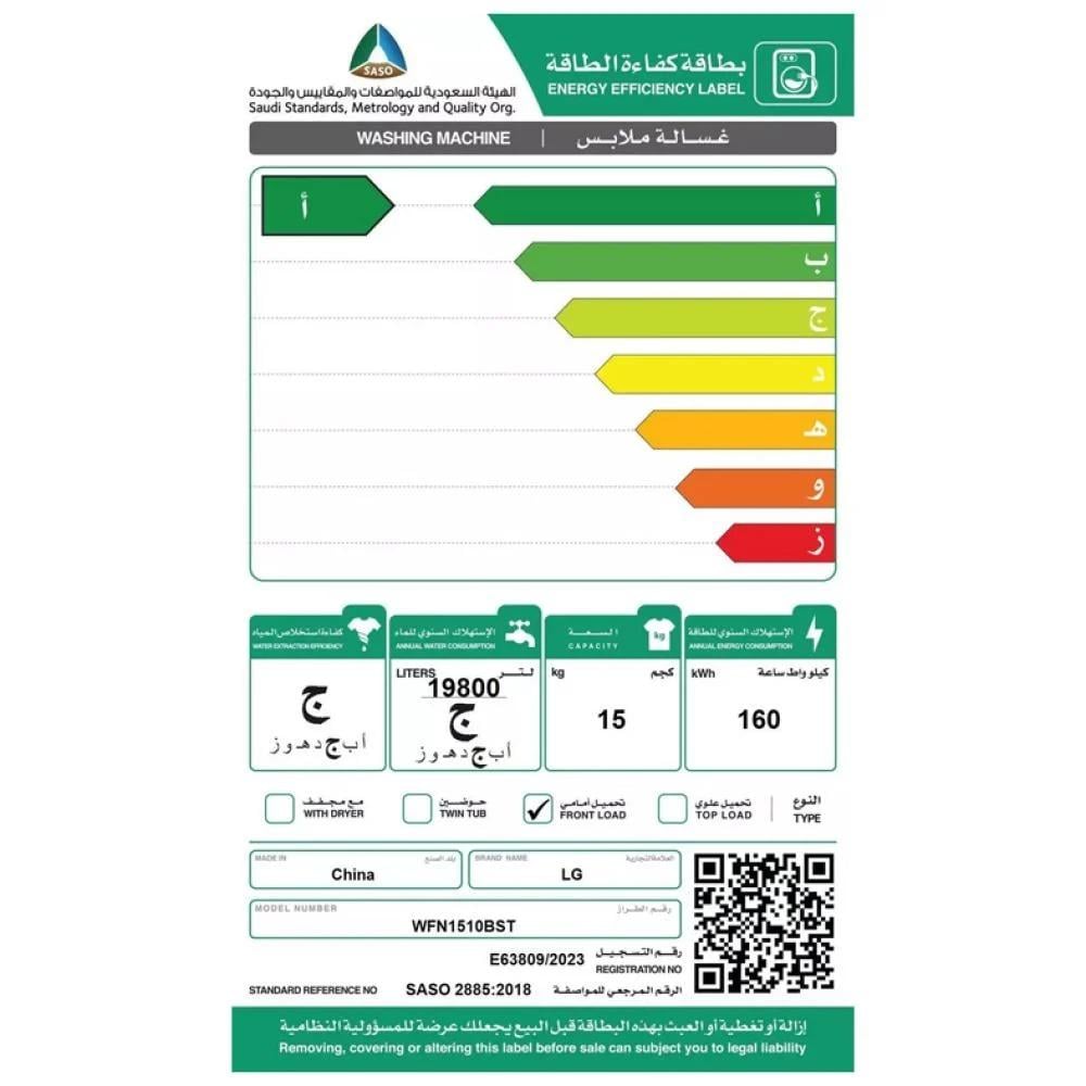 غسالة ملابس LG تعبئة امامية 15 كيلو رمادي غامق | WFN1510BST
