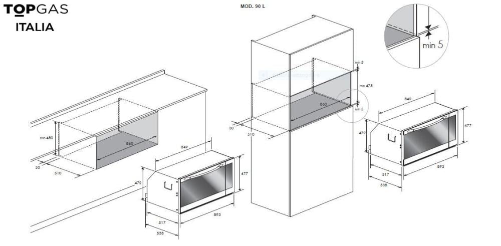 فرن بلت ان توب غاز كهرباء 90*48 سم 9 برامج-ايطالي | TGO909F