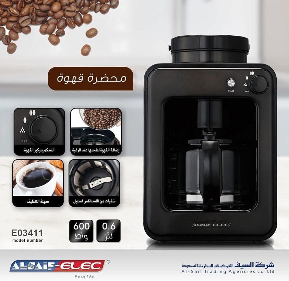 السيف ماكينة تحضير قهوة كهربائية سعة 600 لتر وقدرة 580 واط | E03411