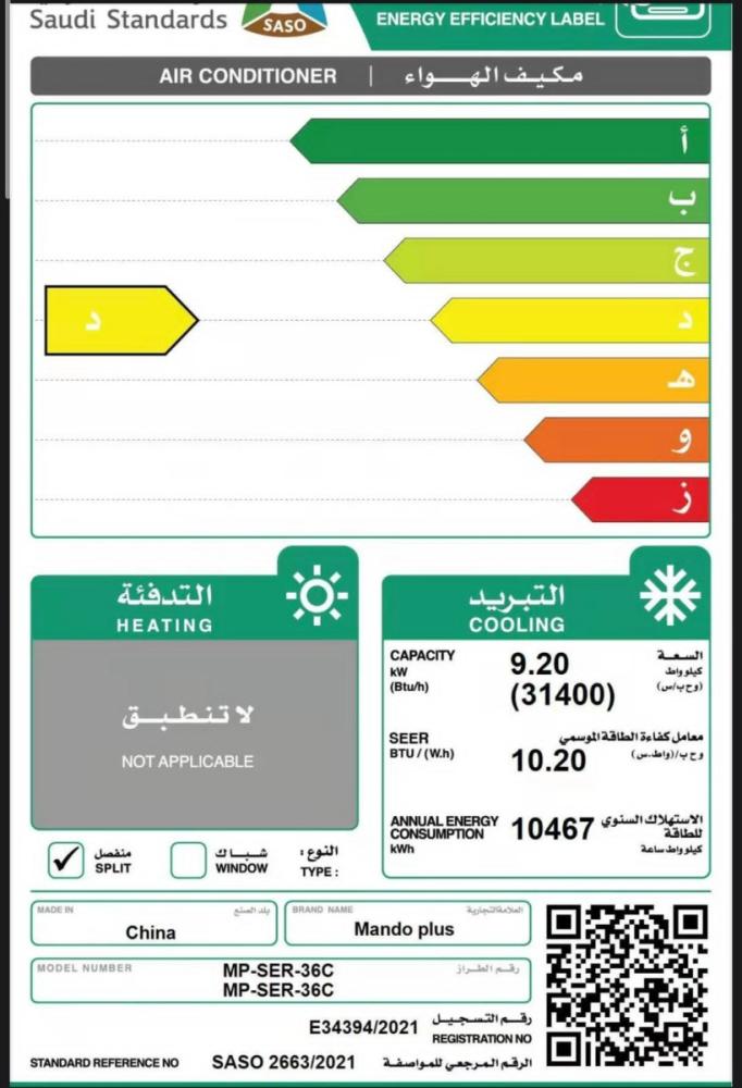 Mando Plus Split Air Conditioner 31400 BTU Cooling | MP-SER-36C